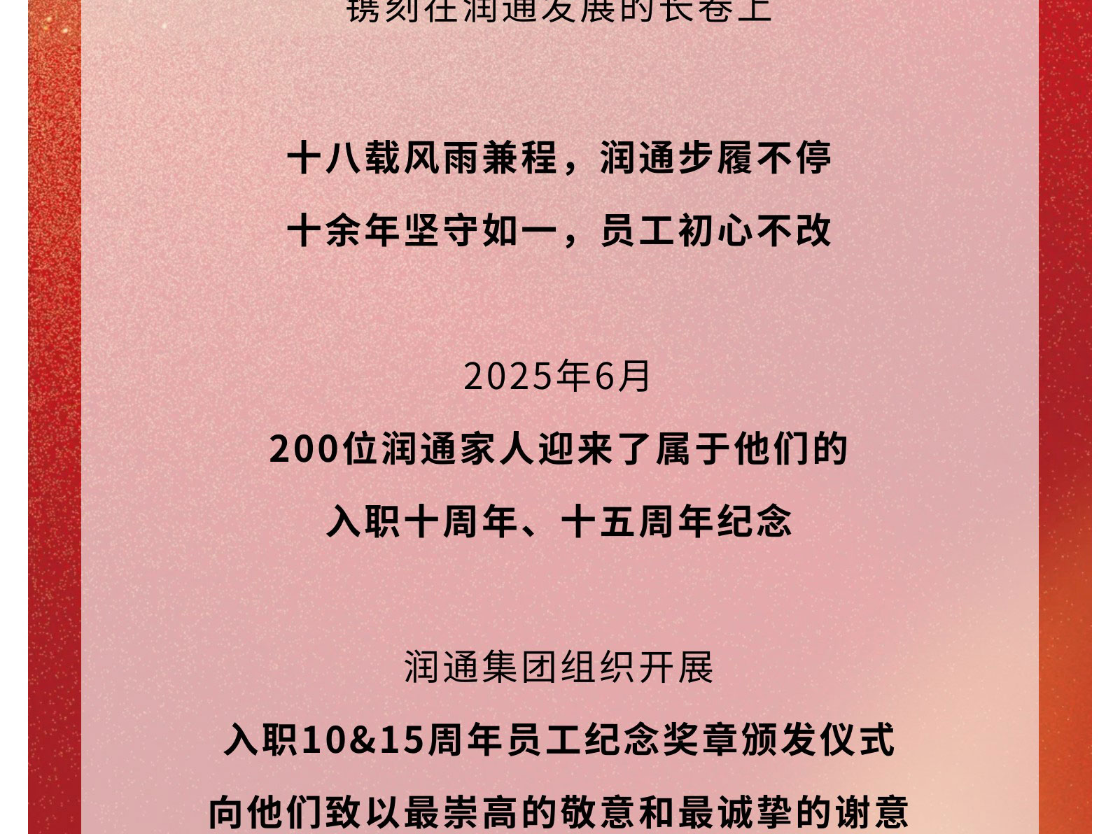 礪新十八載 同心啟新程丨2025潤通集團入職10&15周年員工紀念獎章頒發儀式圓滿舉行
