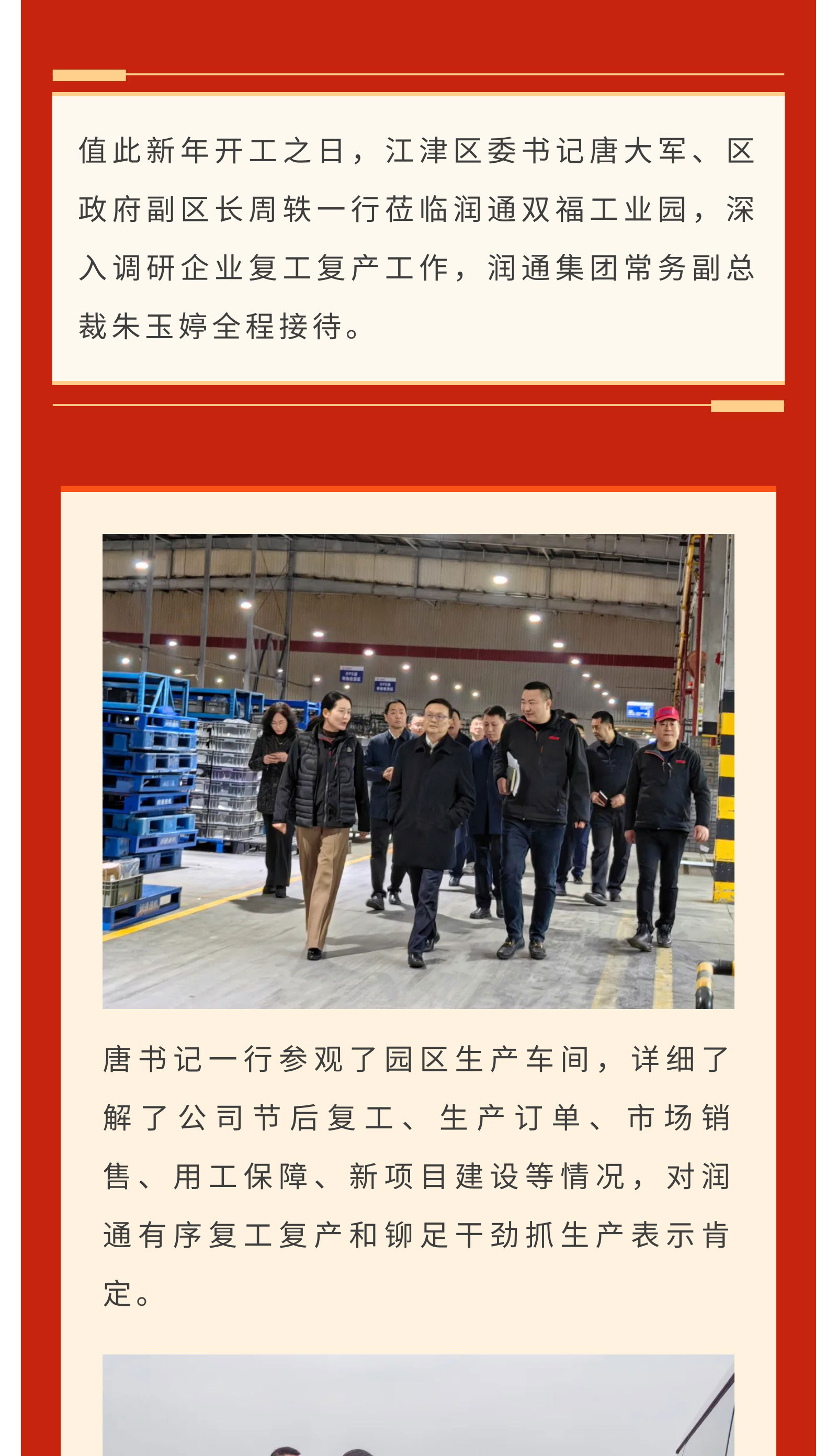 新元肇啟 開工大吉丨江津區(qū)委書記唐大軍一行蒞臨潤通調(diào)研復工復產(chǎn)工作
